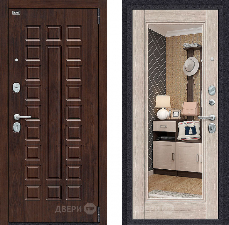 Входная металлическая Дверь Bravo Оптим Урбан с зеркалом Cappuccino Veralinga в Электрогорске 860х2050 мм