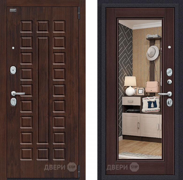 Входная металлическая Дверь Bravo Оптим Урбан с зеркалом Wenge Veralinga в Электрогорске 860х2050 мм