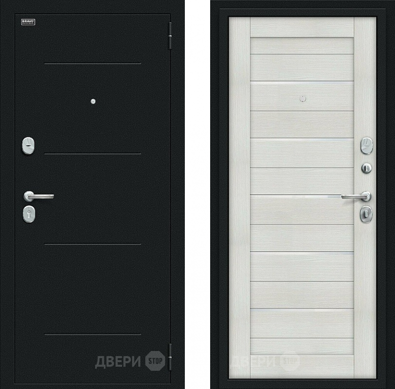 Входная металлическая Дверь Bravo Техно Kale Букле черное/Bianco Veralinga в Электрогорске 860х2050 мм