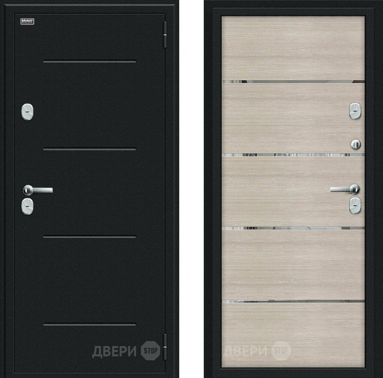 Входная металлическая Дверь Bravo Thermo Лайн Букле черное/Cappuccino Veralinga в Электрогорске 860х2050 мм
