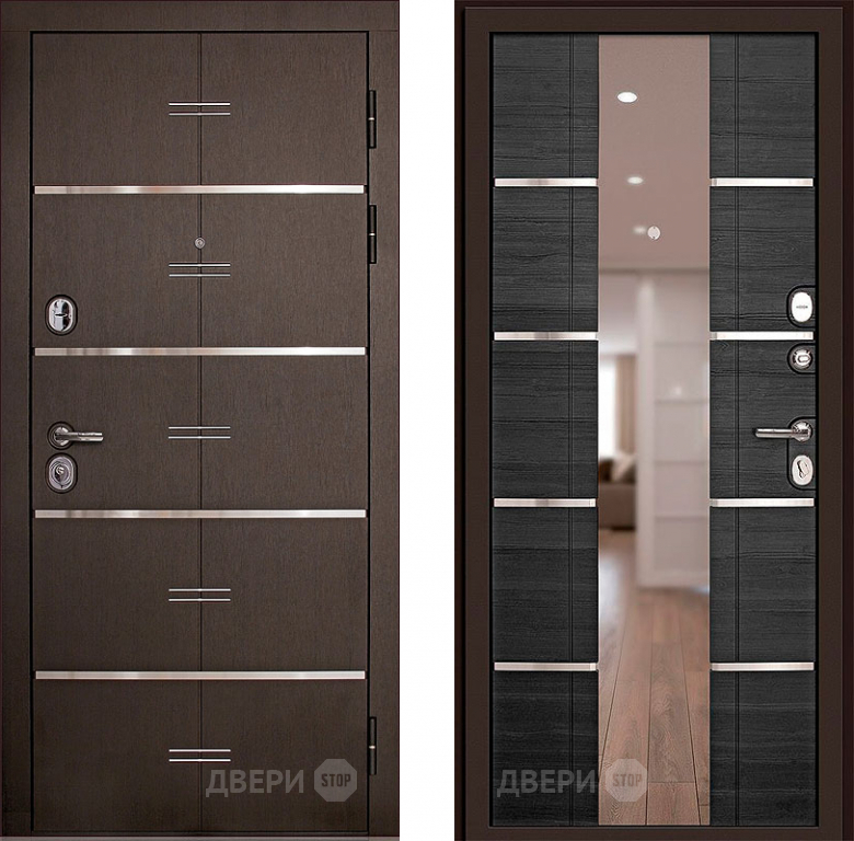 Входная металлическая Дверь (Дверной Континент) Савона с зеркалом Венге в Электрогорске 860х2050 мм