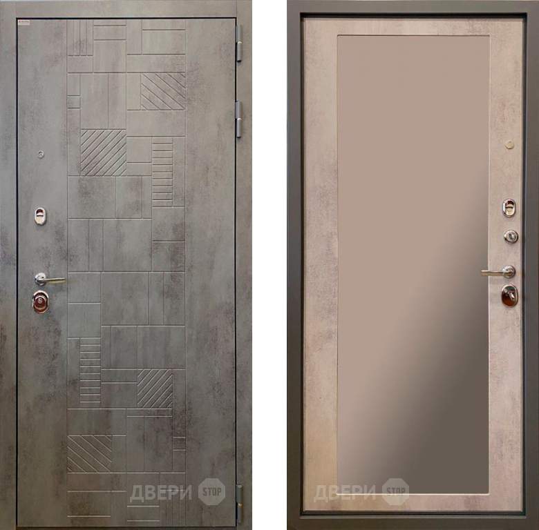 Входная металлическая Дверь Ратибор Тетрис 3К с зеркалом Бетон светлый в Электрогорске 860х2050 мм