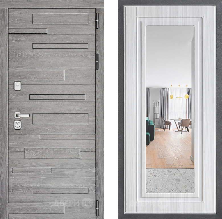 Входная Дверь Дверной континент ДК-10 ФЛЗ Зеркало Сандал белый 960x2050 мм