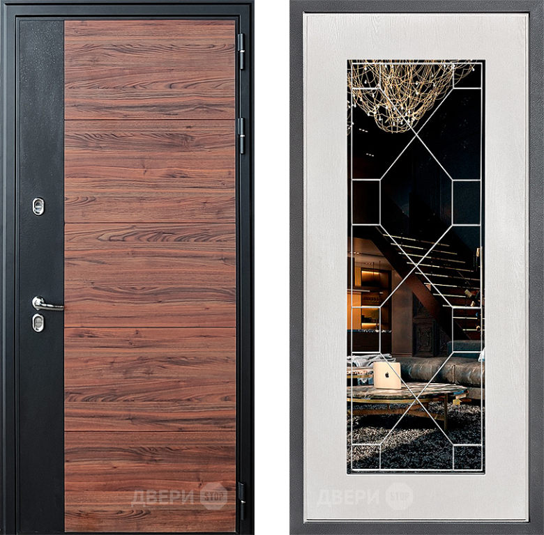 Входная Дверь Дверной континент ДК-15 Красное Дерево ТЕРМО ФЛ-Тиффани Зеркало Белое дерево 860x2050 мм