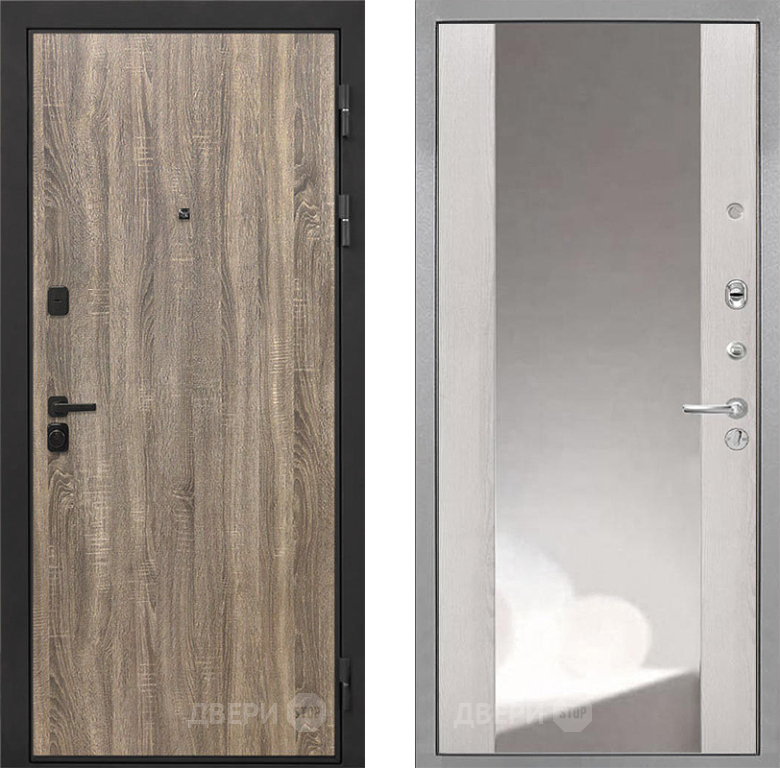 Входная Дверь Интекрон (INTECRON) Профит Black Дуб Турин ФЛЗ-516 Зеркало Сосна белая 860x2050 мм