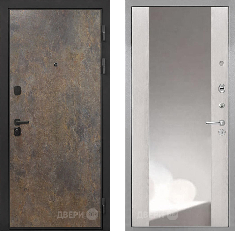 Входная Дверь Интекрон (INTECRON) Профит Black Гранж ФЛЗ-516 Зеркало Сосна белая 960x2050 мм