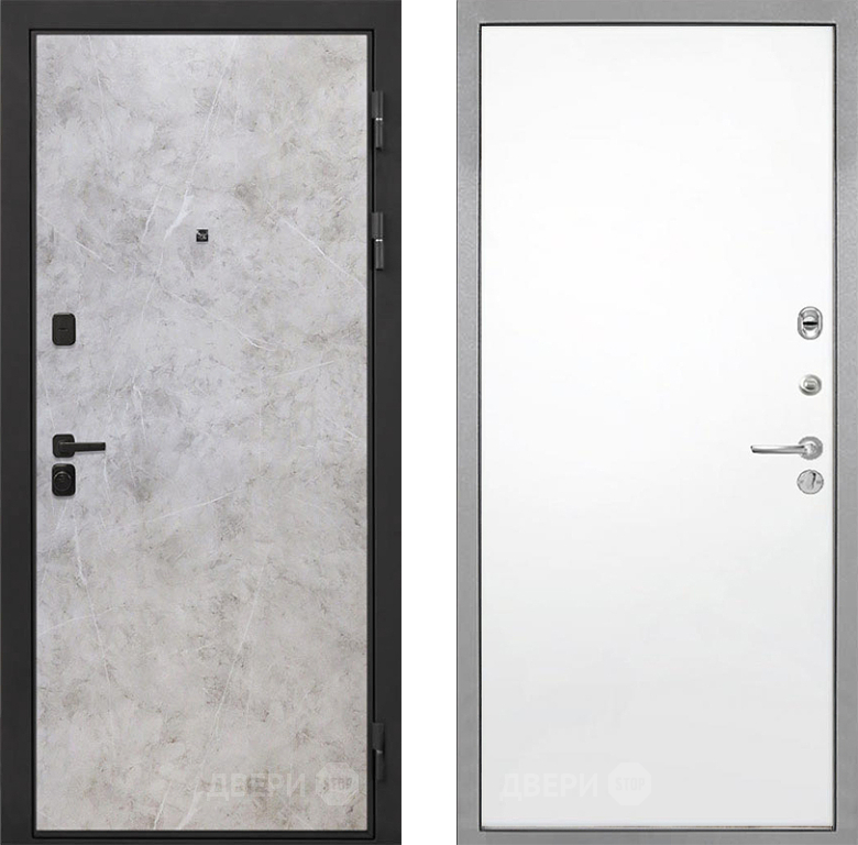 Входная Дверь Интекрон (INTECRON) Профит Black Мрамор Светлый Гладкая Силк Сноу 860x2050 мм