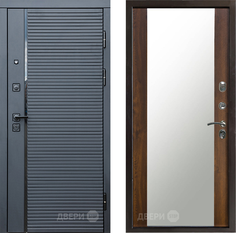 Входная Дверь Престиж Черная Линия Зеркало Дуб 960x2050 мм