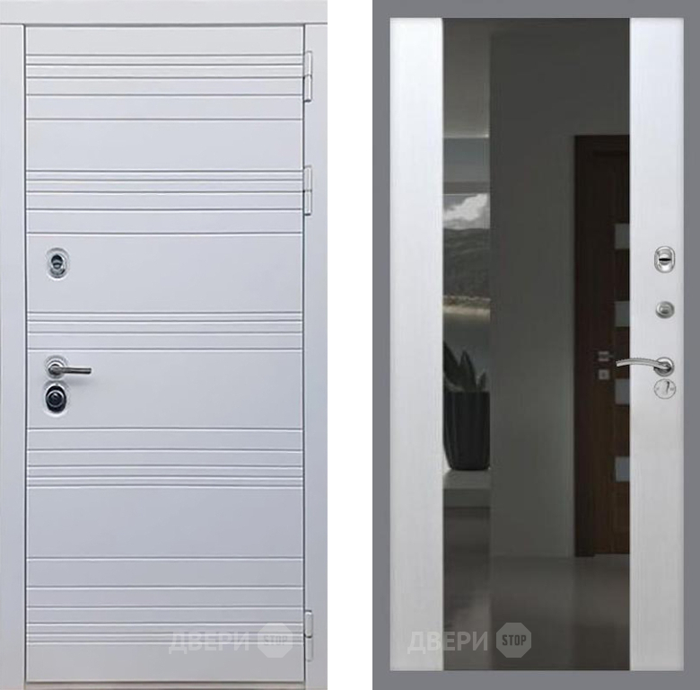 Входная Дверь Рекс (REX) 14 Силк Сноу СБ-16 Зеркало Белый ясень 960x2050 мм
