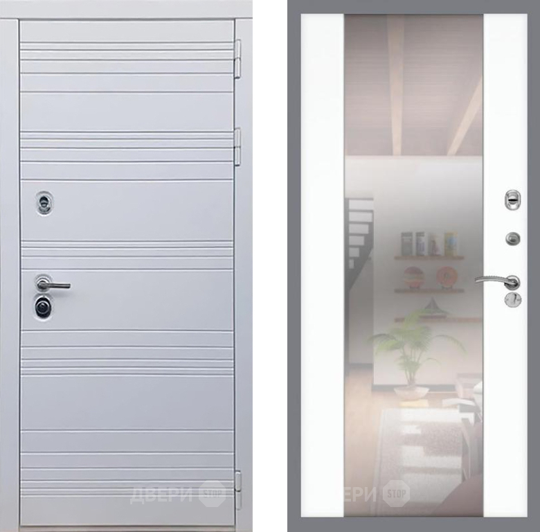 Входная Дверь Рекс (REX) 14 Силк Сноу СБ-16 Зеркало Силк Сноу 860x2050 мм
