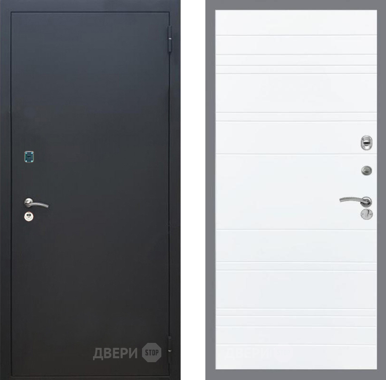Входная Дверь Рекс (REX) 1A Черный Муар Line Силк Сноу 860x2050 мм