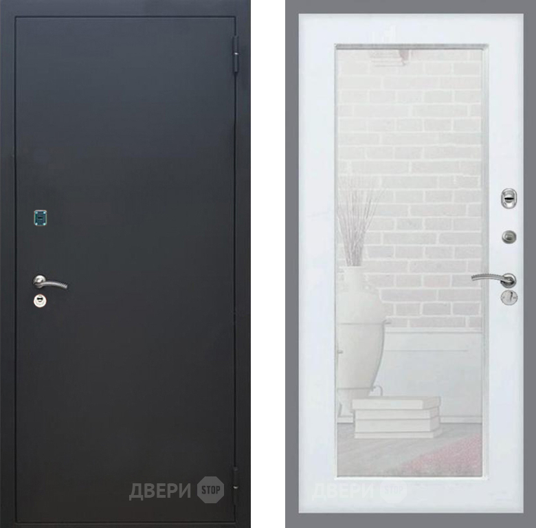 Входная Дверь Рекс (REX) 1A Черный Муар Зеркало Пастораль Белый ясень 960x2050 мм