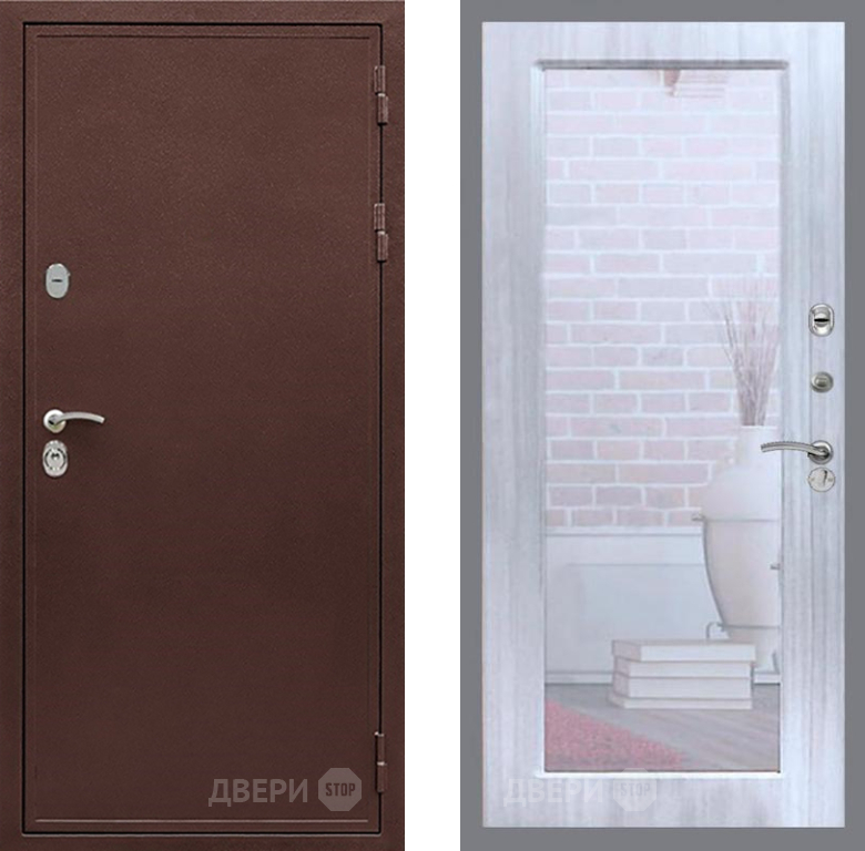 Входная Дверь Рекс (REX) 5 металл 3 мм Зеркало Пастораль Сандал белый 960x2050 мм
