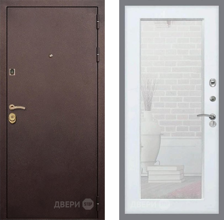Входная Дверь Рекс (REX) Лайт 3К Зеркало Пастораль Силк Сноу 860x2050 мм