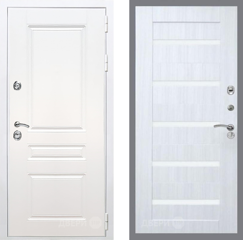 Входная Дверь Рекс (REX) Премиум-н Силк Сноу СБ-14 стекло белое Сандал белый 960x2050 мм
