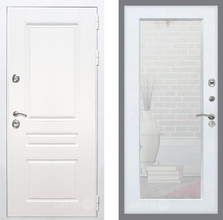 Входная Дверь Рекс (REX) Премиум-н Силк Сноу Зеркало Пастораль Белый ясень 960x2050 мм