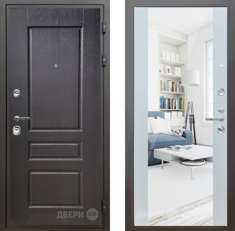 Входная Дверь Шелтер (SHELTER) Комфорт Дуб английский 13 с зеркалом Белый матовый 860x2050 мм