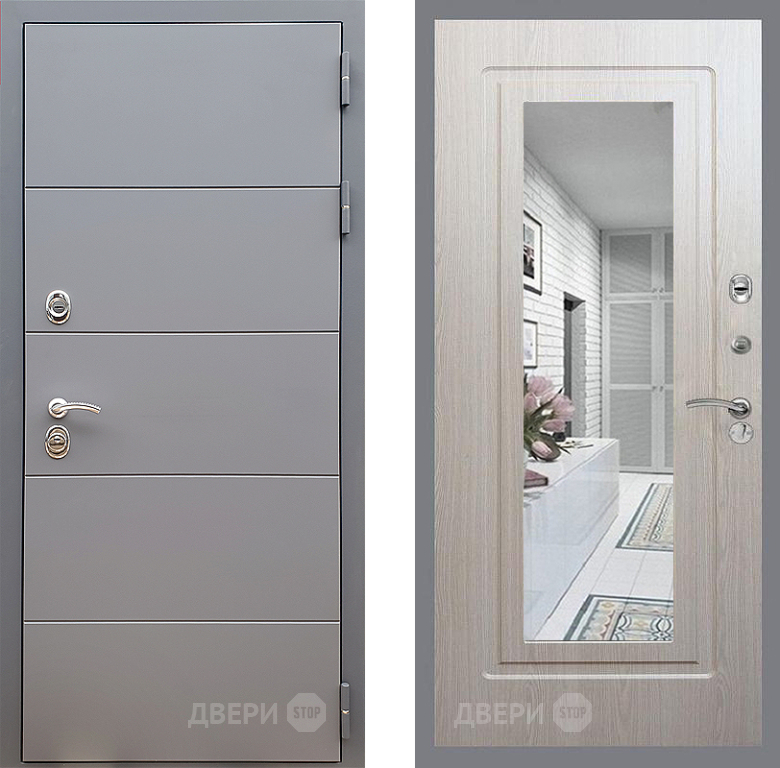 Входная Дверь Стоп АРТ ГРАФИТ Зеркало ФЛ-120 Беленый дуб 860x2050 мм