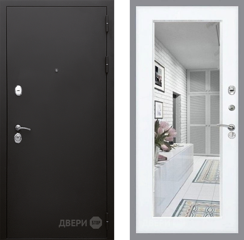 Входная Дверь Стоп КЛАССИК Шагрень Зеркало Силк Сноу 860x2050 мм