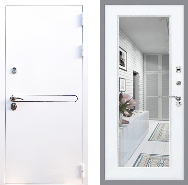 Входная Дверь Стоп Лайн Вайт Зеркало Силк Сноу 860x2050 мм