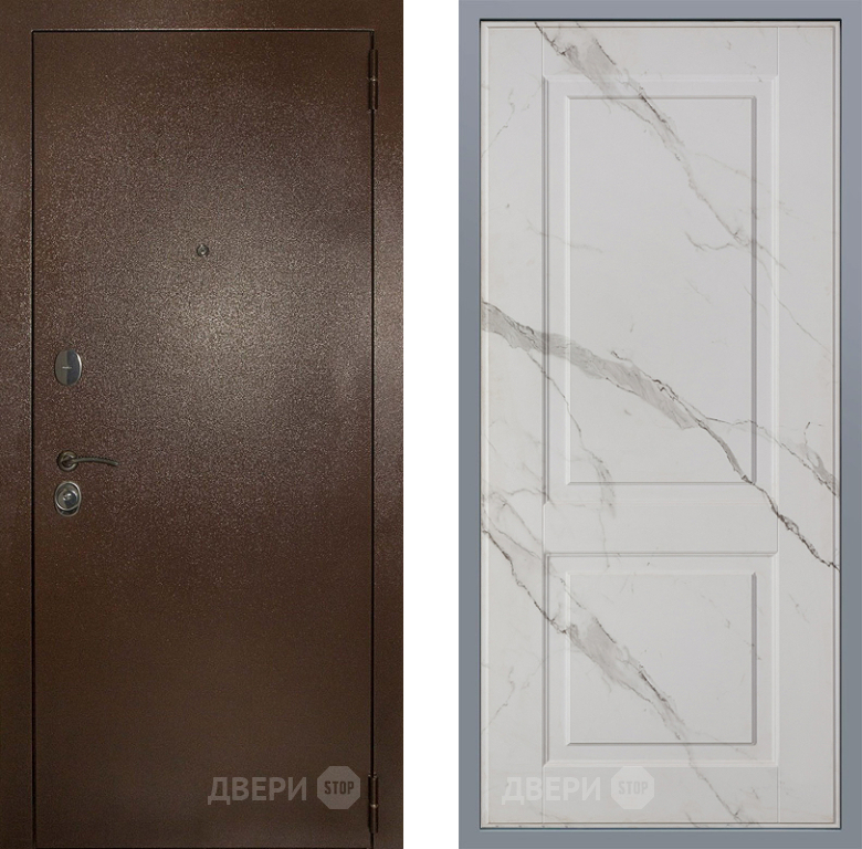 Входная Дверь Заводские двери Эталон 3к антик медь Доррен Мрамор белый 960x2050 мм