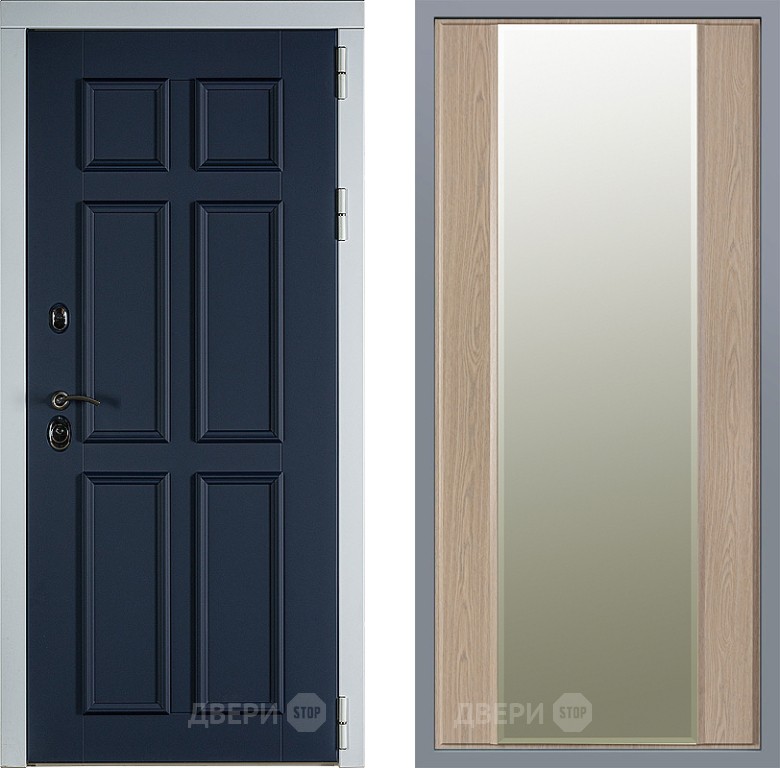 Входная Дверь Заводские двери Стокгольм Зеркало Макси Беленый дуб 960x2050 мм